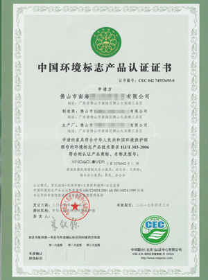 2014中國環(huán)境標(biāo)志產(chǎn)品認(rèn)證證書英文版(新達(dá))