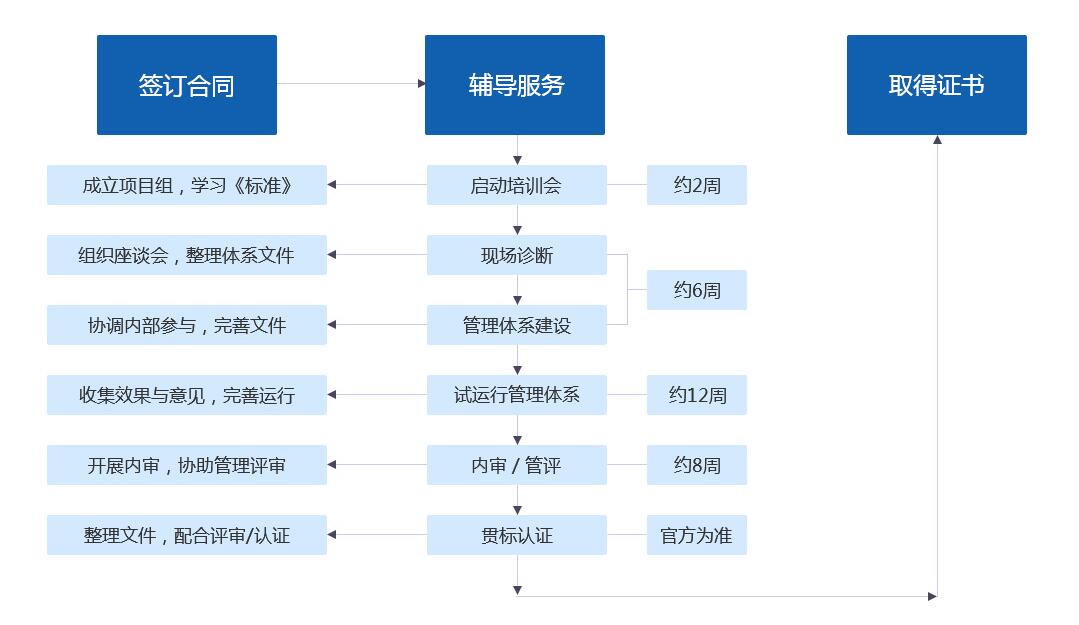 A.一般情況下6個月左右時間完成貫標(biāo)輔導(dǎo)工作,做足了準(zhǔn)備后即可申請認(rèn)證;認(rèn)證時間要根據(jù)認(rèn)證公司的安排而定,如兩個月到半年不等。
