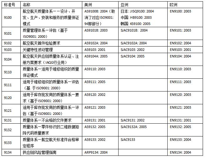AS9100《質量管理體系——航空航天——要求》是依據ISO9001補充行業(yè)特定要求的國際航空航天質量管理體系標準,該體系標準由國際航空航天質量協(xié)調組織(IAQG)于2001年組織制定并發(fā)布,它是在ISO9001的基礎上,增加了航空航天工業(yè)的特殊要求,其目的是在世界范圍為航空航天工業(yè)提供統(tǒng)一的質量管理體系要求。2009年1月SAE正式頒布了AS9100C版標準。該版標準對B版標準作了較大的修改。修訂后的AS9100標準仍然是采用“A+B”的結構,A部分將采用2008版的ISO9001標準,B部分是在原來的B部分基礎上又進行了修改、補充。
