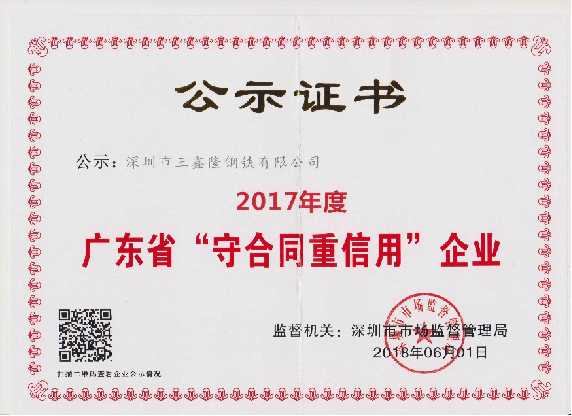 證書名稱:廣東省“守合同重信用”企業(yè);連續(xù)二年廣東省守合同重信用企業(yè);連續(xù)三年廣東省守合同重信用企業(yè)