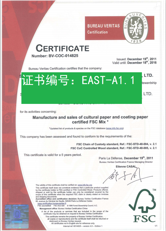 FSC證書目前沒有全中文的證書;都是英文證書;如果您需要中文的森林認證,建議您做PEFC森林認證證書,更適合中國國情。