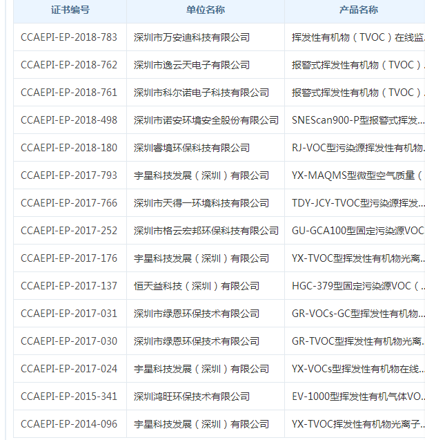 今天東方信諾整理了一下目前VOC在線監(jiān)測系統(tǒng)有多少家通過了CCEP環(huán)保認(rèn)證,現(xiàn)在系數(shù)一下深圳通過認(rèn)證的